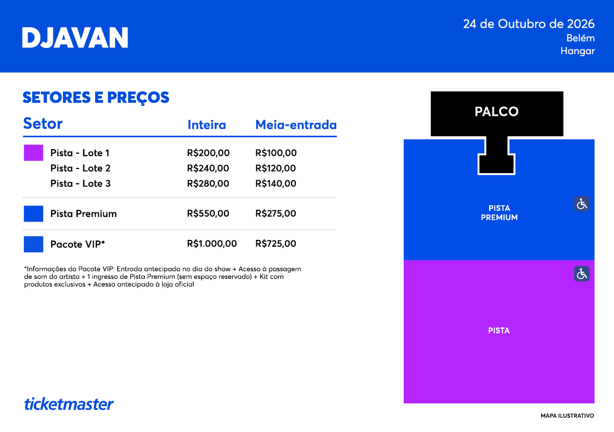 Início das Vendas: 03/12/2025 às 11h em www.ticketmaster.com.br e a partir das 12h na Bilheteria Oficial.