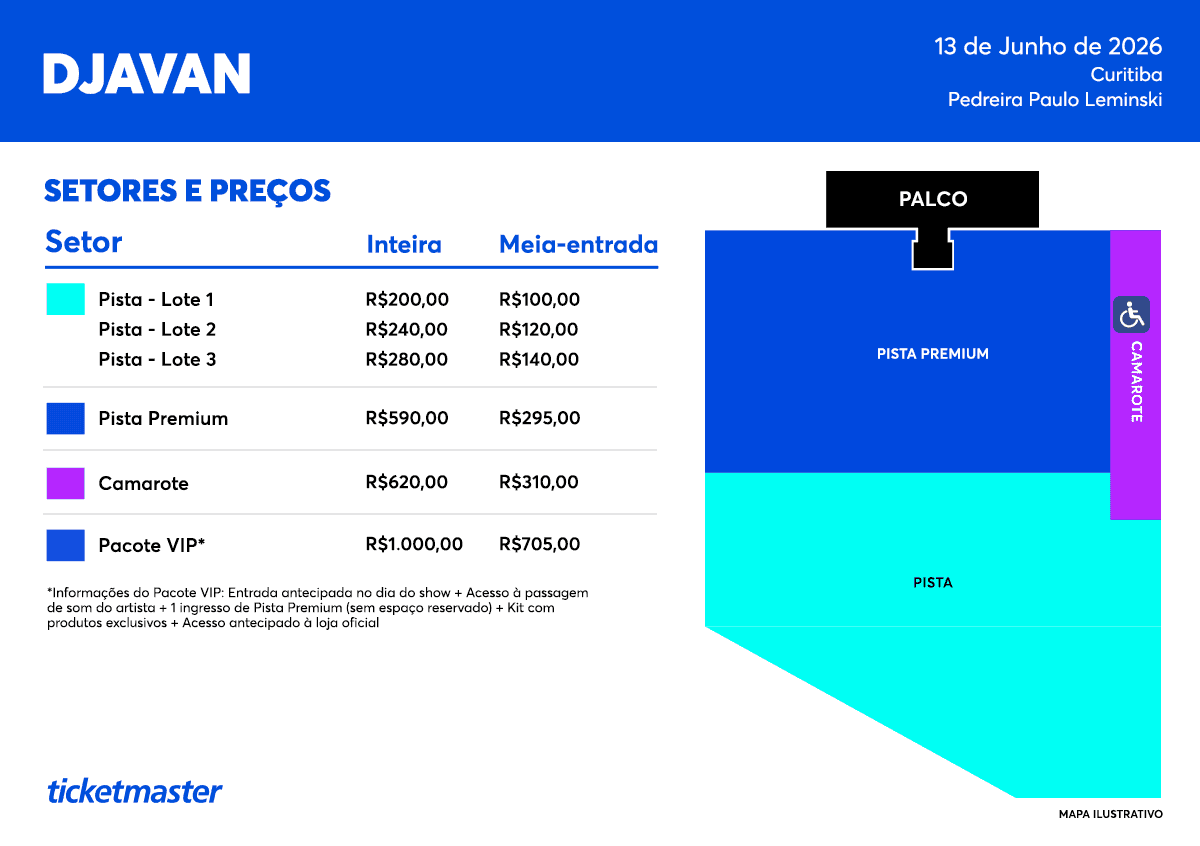 Início das Vendas: 03/12/2025 às 11h em www.ticketmaster.com.br e a partir das 12h na Bilheteria Oficial.